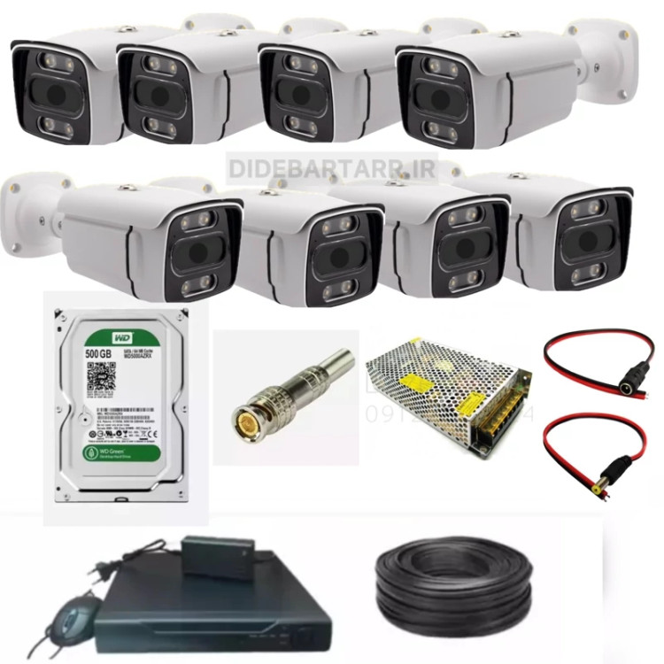 پک کامل دوربین مداربسته FULL HD دید در شب رنگی شامل :