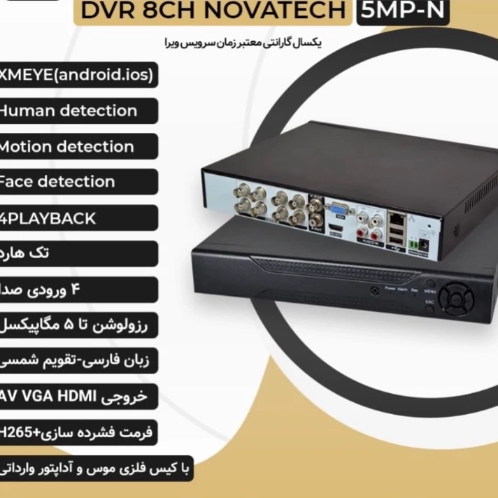 ✅دستگاه dvr هشت کانال 5 مگا پیکسل برند SONY HD (فرمت ضبط H265، قابلیت تشخیص چهره و حرکت ، زبان فارسی ، تقویم شمسی ، برنامه انتقال تصویر xmeye ،فول پورت، 4 ورودی صدا قابلیت انتقال تصویر روی موبایل و لپ تاپ)