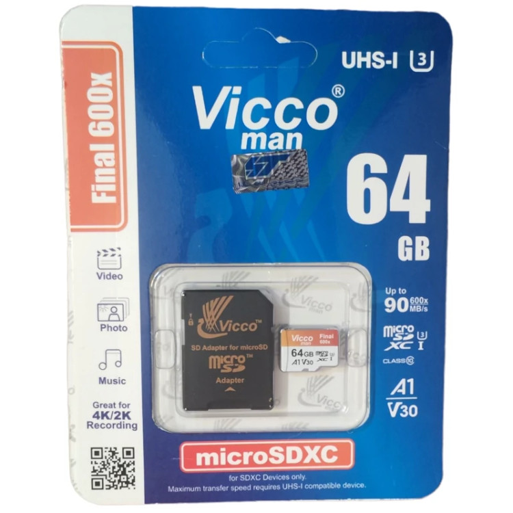 مموری کارت64گیگ ویکو Class10uhs3 با گارانتی مدام العمر