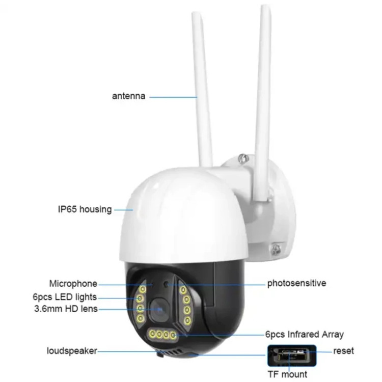دوربین مداربسته اسپیددام سیم کارتی (4G) ریجستری شده مدل 4G سیم کارتی SF4_2s0Simcard 4g camera، با وضوح تصویر2 مگاپیکسل و با نرم افزار محبوب V380 pro طوری طراحی شده است که شما میتوانید بدون استفاده از مودم و با قرار دادن سیم کارت داخل دوربین به راحتی محیط خود را از راه دور بر روی گوشی مشاهده کنید و دوربین را به صورت 355 درجه در محور افقی و 120 درجه در محور عمودی بچرخانید. همچنین این دوربین این قابلیت رو دارا می باشد که تصاویر و صدا را بر روی micro SD ( رم موبایل ) ضبط کند و انتقال دهد ، قابلیت پشتیبانی تا 128 گیگ رم را دارد و جنس بدنه این محصول از PVC مقاوم ساخته شده است ، قابلیت های مهم این دوربین : پروژکتور قدرتمند و iR (مادون قرمز) برای دید در شب فوق العاده در شب به صورت رنگی ، ضدآب بودن بدون محدودیت نصب در هر مکانی ، دزدگیر حرفه ای با قابلیت ارسال پیام هشدار ، توانایی دیدن تصاویر و صدای ضبط شده به صورت همزمان در نرم افزار است ، مکالمه دو طرفه و ضبط صدا.