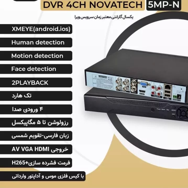 ✅دستگاه dvr 4 کانال 5 مگا پیکسل برند SONY HD (فرمت ضبط H265، قابلیت تشخیص چهره و حرکت ، زبان فارسی ، تقویم شمسی ، برنامه انتقال تصویر xmeye ،فول پورت، 4 ورودی صدا قابلیت انتقال تصویر روی موبایل و لپ تاپ)